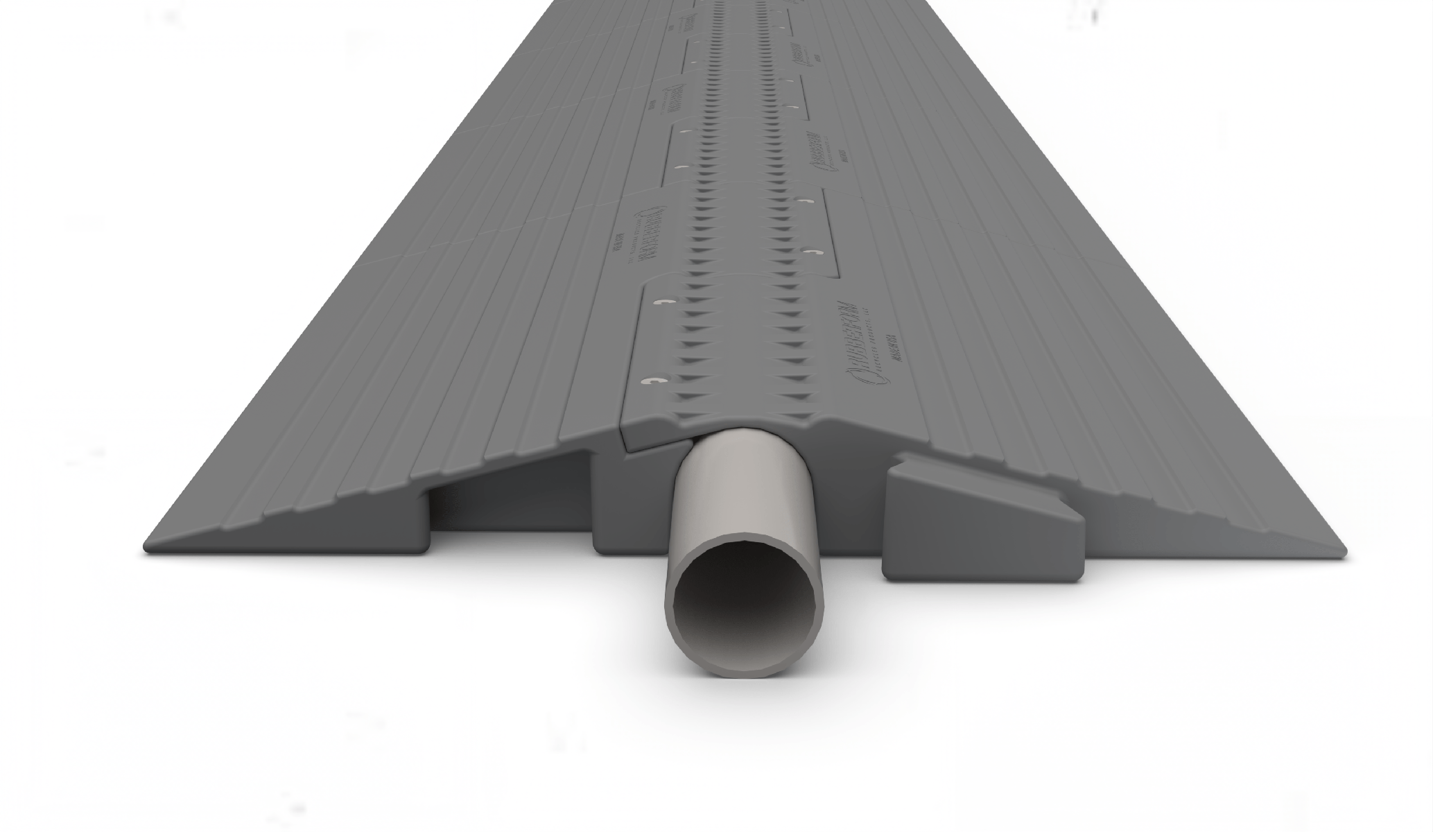 We have 3 sizes: a 1.5” hose ramp for a garden-type hose, a 2” pipe ramp for a Schedule 40 pipe (2 ⅜” OD) that can also fit up to 3” OD pipe or hose, and a 4” ramp for up to a 4.5” OD pipe or hose (originally engineered for Yelomine™ and Aquamine® pipes).