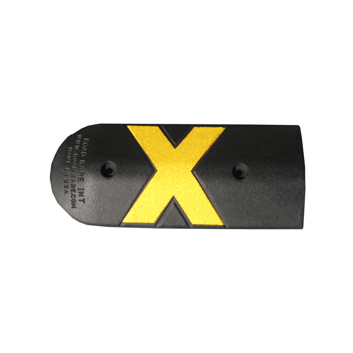 RubberForm uses AASHTO approved yellow reflectors, 2 on our RF-MLSB2.5. On our RF-MLSB3 and RF-MLSB4, we use 3M reflective yellow tape. We have found this to be a far more durable solution than the fabric road tape that many other manufacturers use. If our reflector breaks in our RF-MLSB2.5, they can easily be replaced and if the reflective tape wears off, we have replacement reflective strips available.